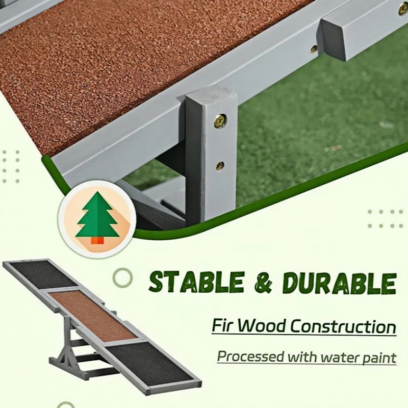 صُممت هذه الأرجوحة المتأرجحة من خشب التنوب المتين، لتتحمل مشاق التدريب اليومي في الهواء الطلق. يضمن هيكلها المتين المتانة والمرونة في مواجهة العوامل الجوية، مما يوفر منصة متينة وطويلة الأمد لتدريب كلبك على خفة الحركة. تمت معالجة الخشب لمنع الالتواء والتشقق، مما يضمن بقائه في حالة ممتازة لسنوات قادمة. - زوايا إمالة قابلة للتخصيص: